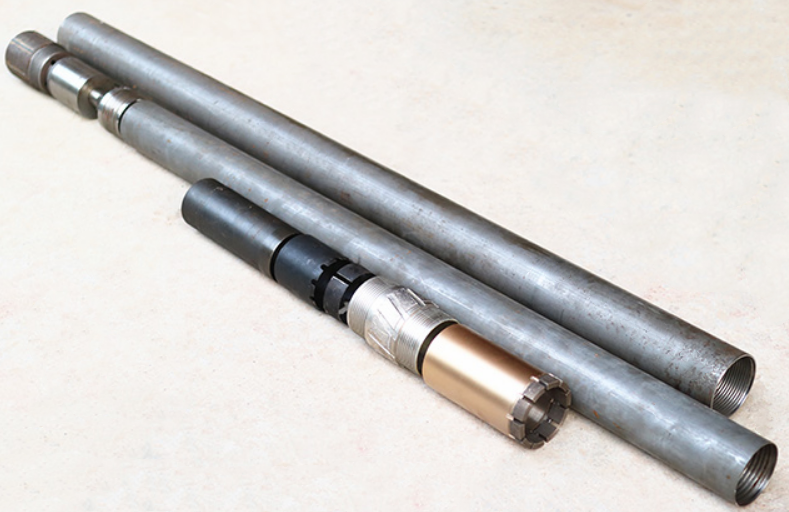 101mm鉆芯取樣混凝土專用單動雙管鉆具,標準長度1.6米,2米、2.5米、3米,配置專用101混凝土抽芯專用薄壁金剛石鉆頭和擴孔器,取芯內徑同P110。 |