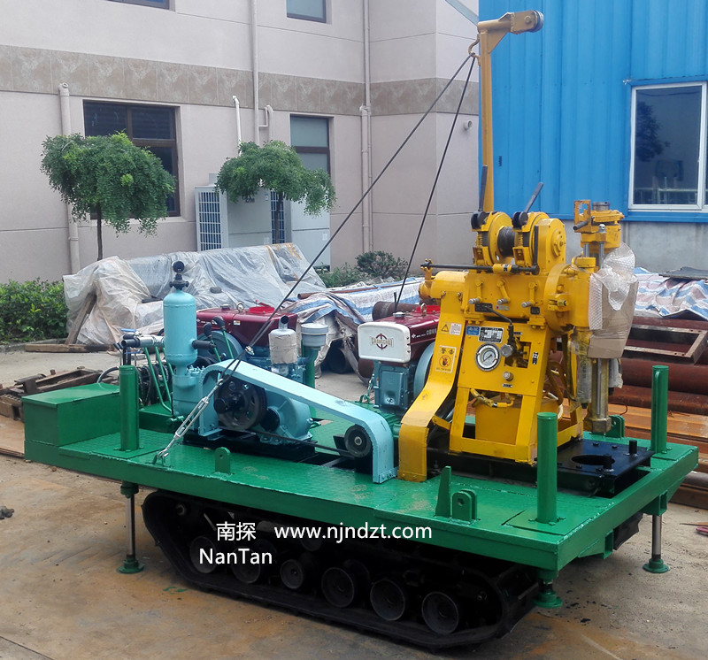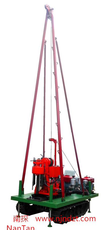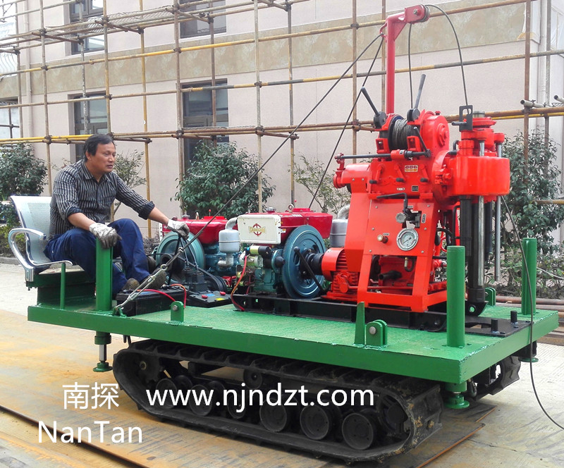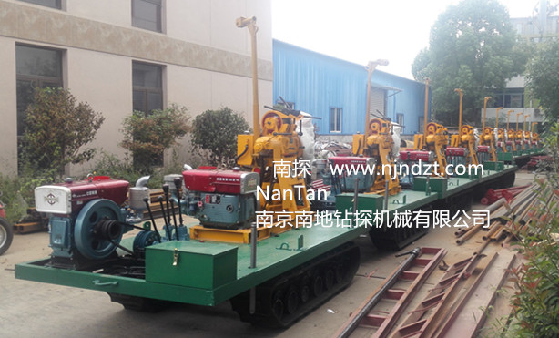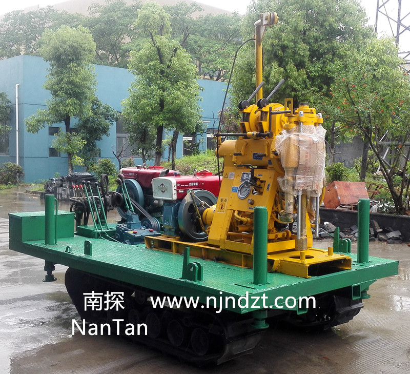 該履帶底盤承載重量達4T,可以裝載各種小型鉆機,如:XY-1-1、XY-1、XY-1A、XY-1A(YJ)、XY-1A-4、XY-1A-5、XY-1B、XY-1B-1、XY-1B-2、XY-200、XY-200(YJ)、XY-200B、XY-200B-1、XY-200B-2、GXY-1系列、GXY-2Q、GXY-200B、GYQ-200、GYQ-200A、GK180、GXY-2K、GXY-2C等100-300米鉆機,并可同時裝載BW160、BW160A、BW200或BW200A型泥漿泵,具有利用鉆機卷揚機起落鉆塔、行走方便等特點,廣泛適用于公路、鐵路、水電、橋梁、壩基等的工程地質(zhì)勘察、地質(zhì)巖芯鉆探、物理勘察、小型灌漿孔、爆破孔、水井孔和空調(diào)孔的鉆進。