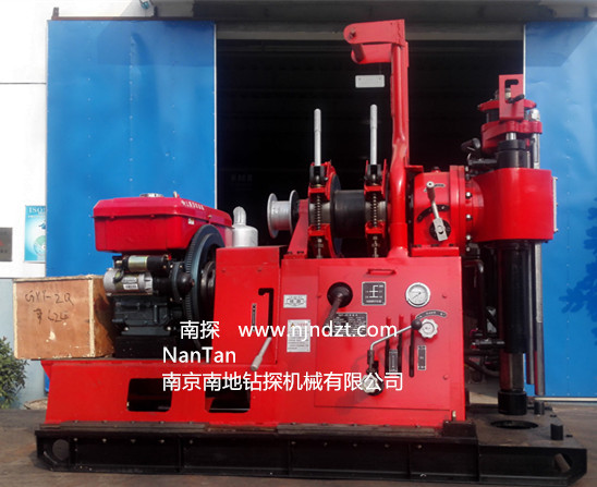 鉆機介紹(Introduction):GXY-2Q型鉆機是一種機械傳動液壓給進的立軸回轉(zhuǎn)式、輕便多用途工程勘察施工鉆機,它適用于工業(yè)和民用建筑以及公路、鐵路、橋基、壩址、水利、水井、探礦等工程地質(zhì)勘察工作,淺層石油和天然氣開采,礦山坑道通風、排水,以及小口徑的基樁孔施工等,固體礦床的普查勘探,爆破孔用各種混凝土結(jié)構(gòu)的檢查孔等,既可以取土樣、巖芯樣,也可以不取芯鉆孔(鉆孔灌漿、水井等),或者進行重型動力觸探和標準貫入試驗(SPT)、沖擊鉆進提取不擾動土土壤取樣原狀土或者沙土取樣。是一種多用途液壓鉆機。 根據(jù)地層的不同,可選用金剛石、硬質(zhì)合金、螺旋等鉆頭進行鉆孔。具有結(jié)構(gòu)緊湊,重量輕,體積小,可拆性好等優(yōu)點,是適應新型市場需求不可多得的理想設備之一。 主要特點(Features): 1、選擇了較合理的轉(zhuǎn)速范圍,轉(zhuǎn)速級數(shù)有八級,集中變速,相互自鎖。 2、低轉(zhuǎn)速,大扭矩,使用范圍廣,鉆進能力強,能適用于鉆機取樣、打井及樁基施工。既適用于工程地質(zhì)勘察,又適用于金剛石巖芯鉆探。 3、鉆機具有兩檔反轉(zhuǎn)速度,便于安全地處理故障。 4、回轉(zhuǎn)器卡盤采用手動球卡式卡盤,夾緊可靠,不傷主動鉆桿,可實行不停機倒桿。 5、油壓給進,操作簡便,鉆進效率高,勞動強度低。 6、配有足夠儀表,有利于掌握孔內(nèi)情況,操縱手柄較少,布局較合理,操縱靈活可靠。 7、采用了雙片常閉磨擦式離合器,開閉靈活,操作使用與調(diào)整方便。 8、裝有前后移動油缸,回轉(zhuǎn)器向后移動465mm,對起下鉆具帶來了很多方便。 9、結(jié)構(gòu)緊湊,體積小,重量輕,拆卸方便,便于解體及搬運,能適用于丘陵或山區(qū)的鉆探工作。 10、主動鉆桿采用中六方53*Φ59。 主要技術(shù)參數(shù)(Technical Specifications):